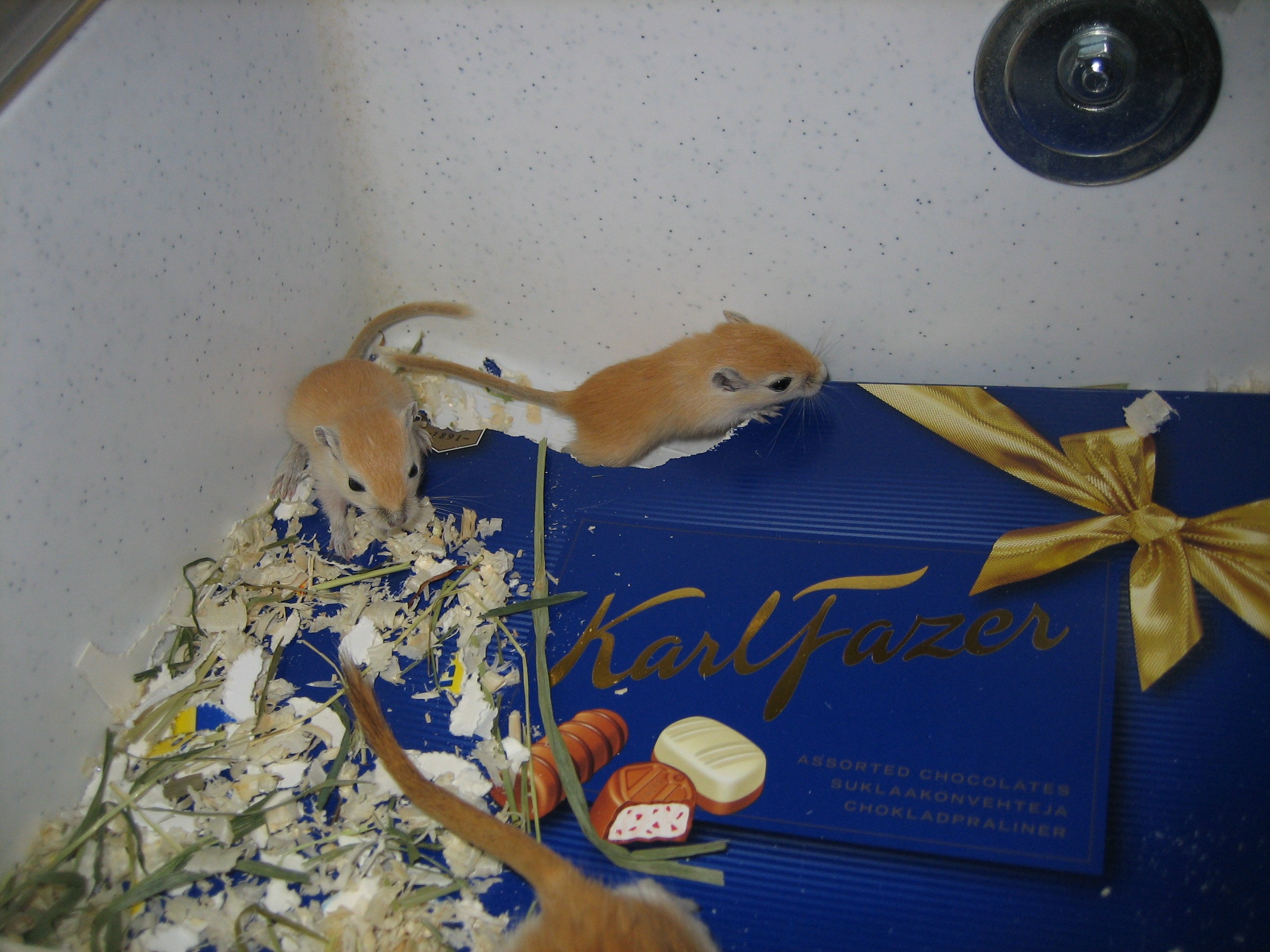rauhoittuisi (häkit ovat keittiössä). Syntyneet poikaset ovat
